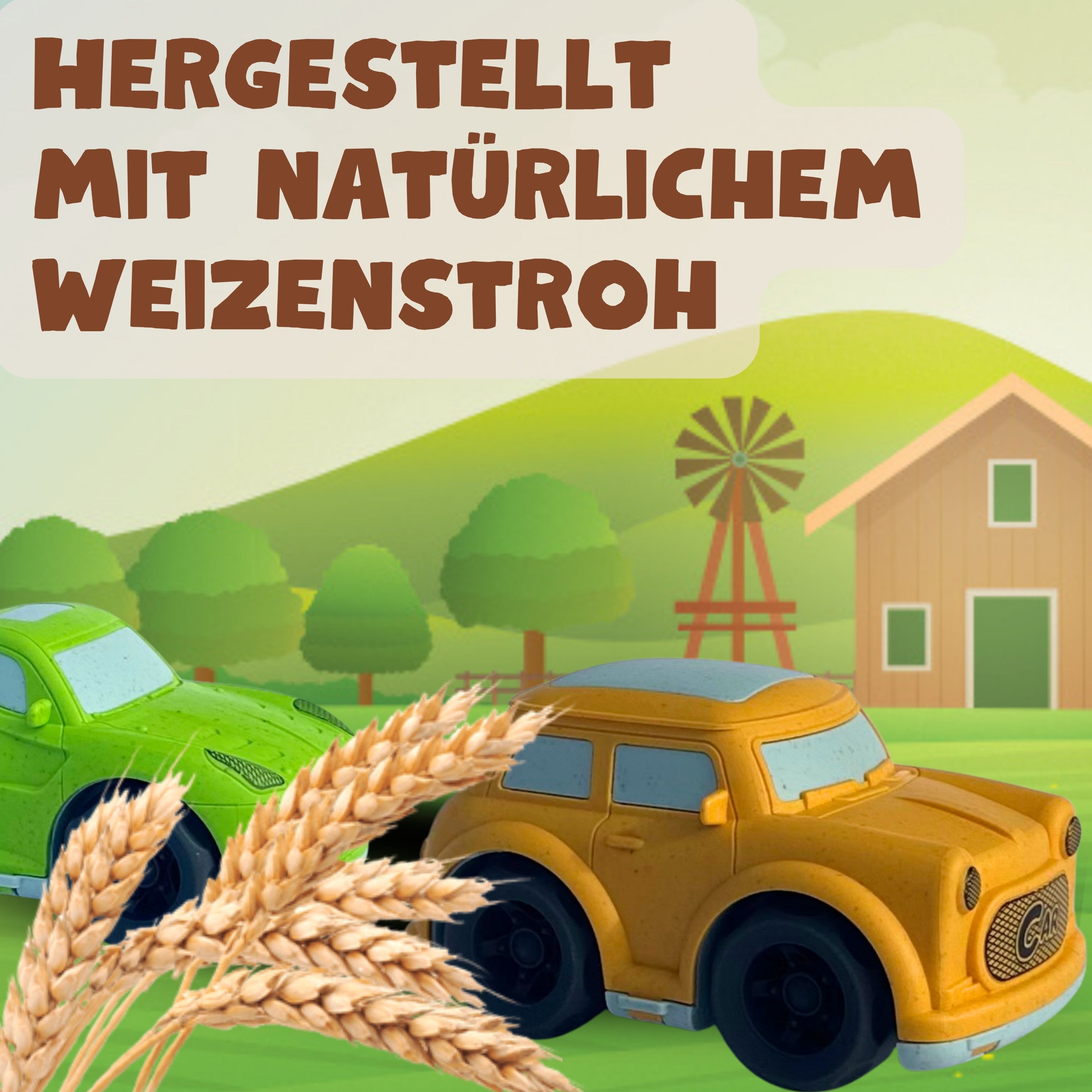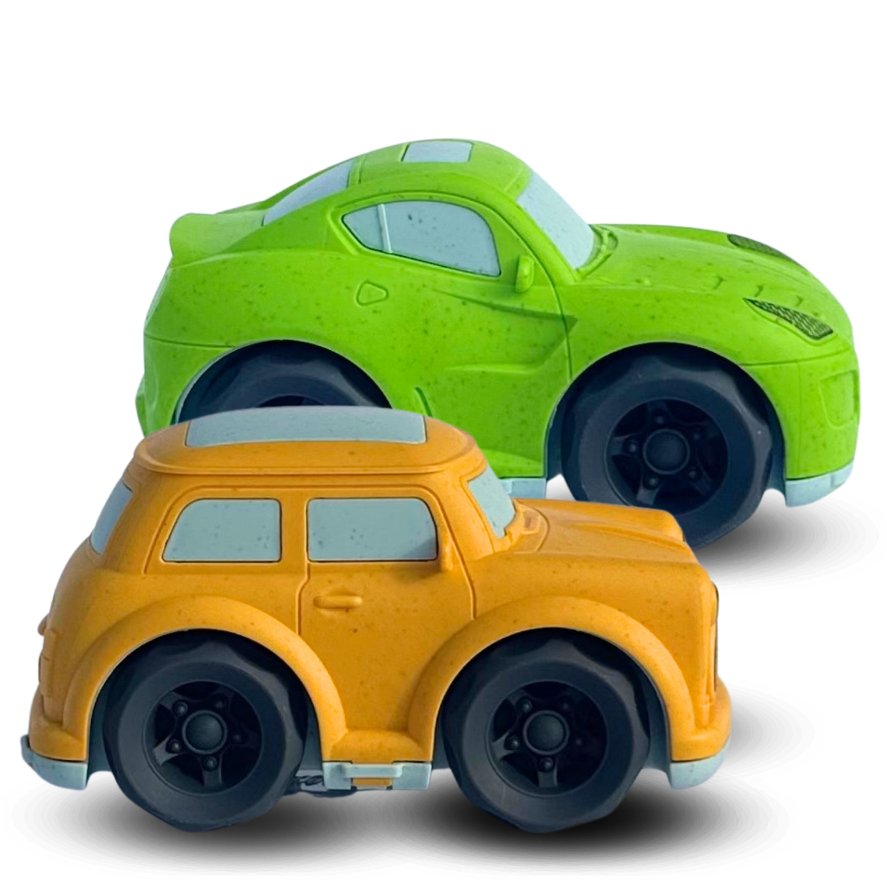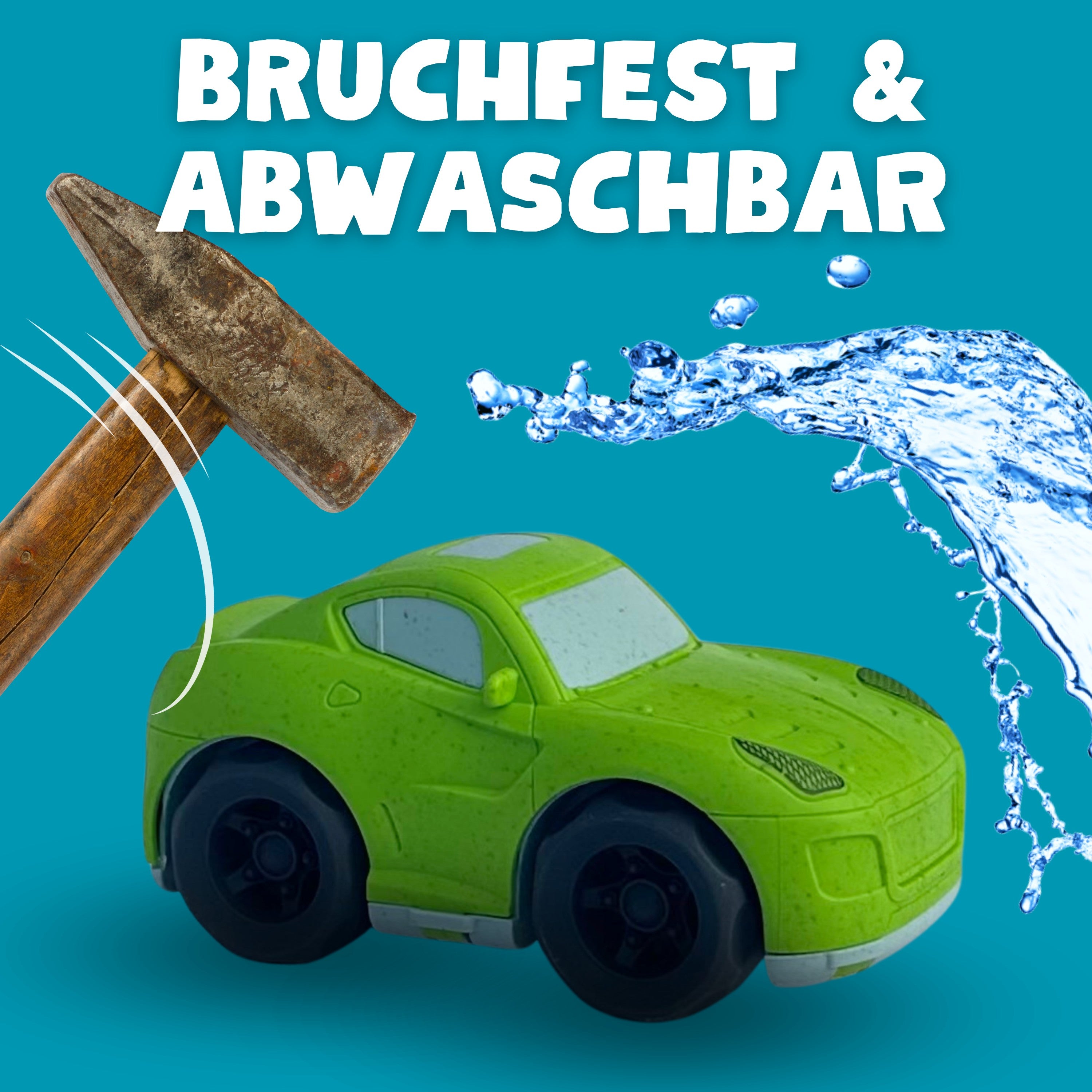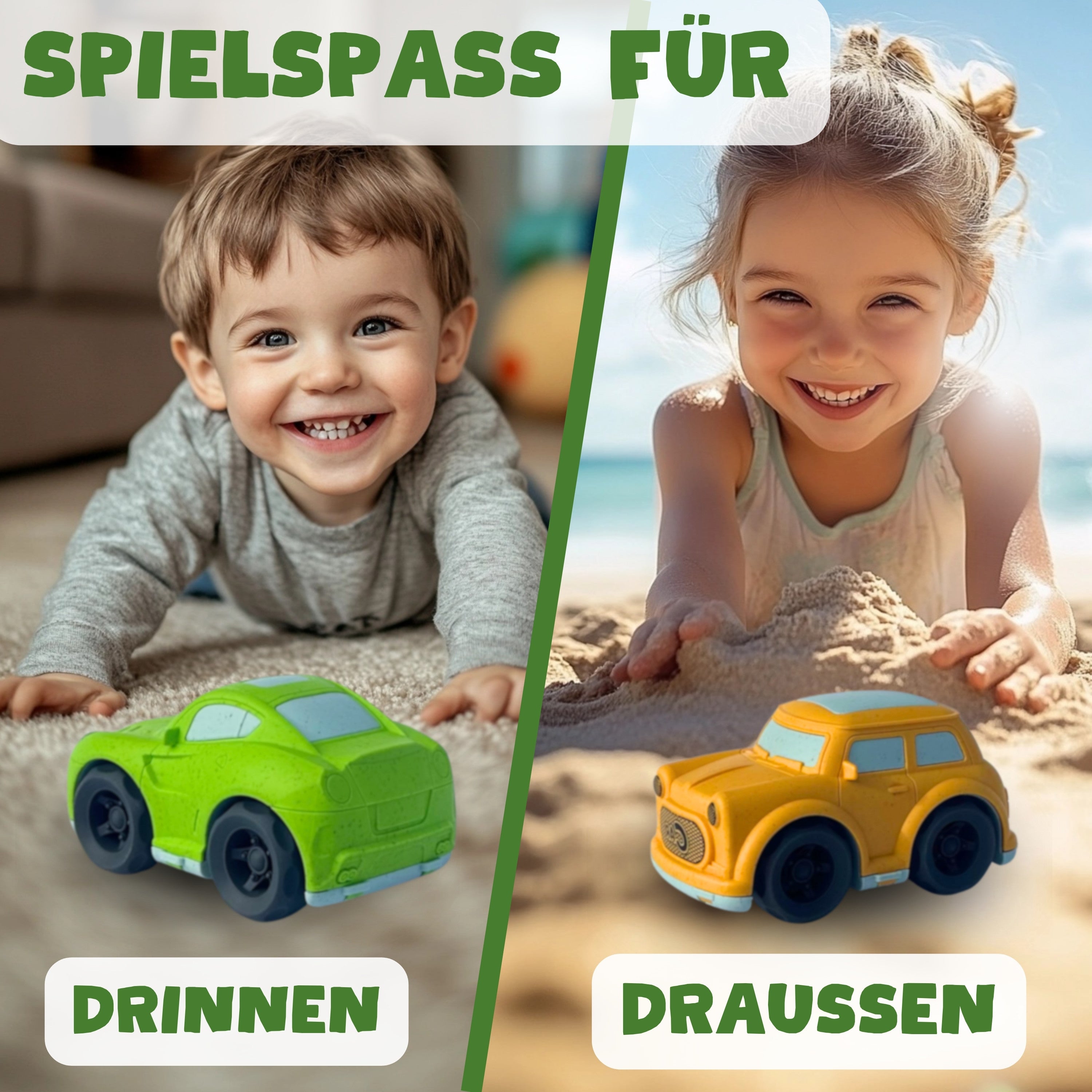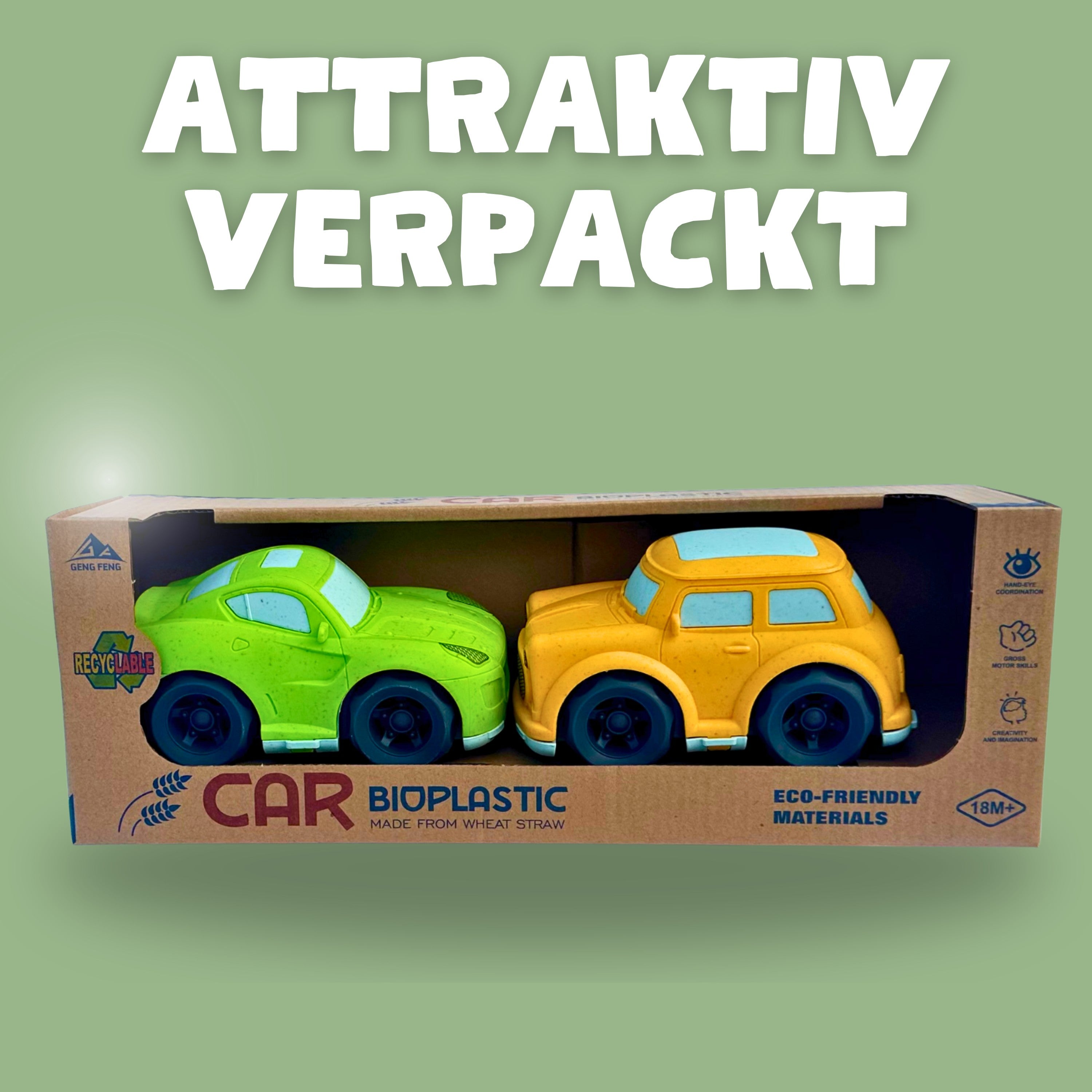 BIOPLAY® Spielauto Rennwagen & Kultauto 2-er Set mini | Bio Kunststoff | Nachhaltiges Spielzeug ab 1 Jahr für Jungen und Mädchen | Indoor und Outdoor