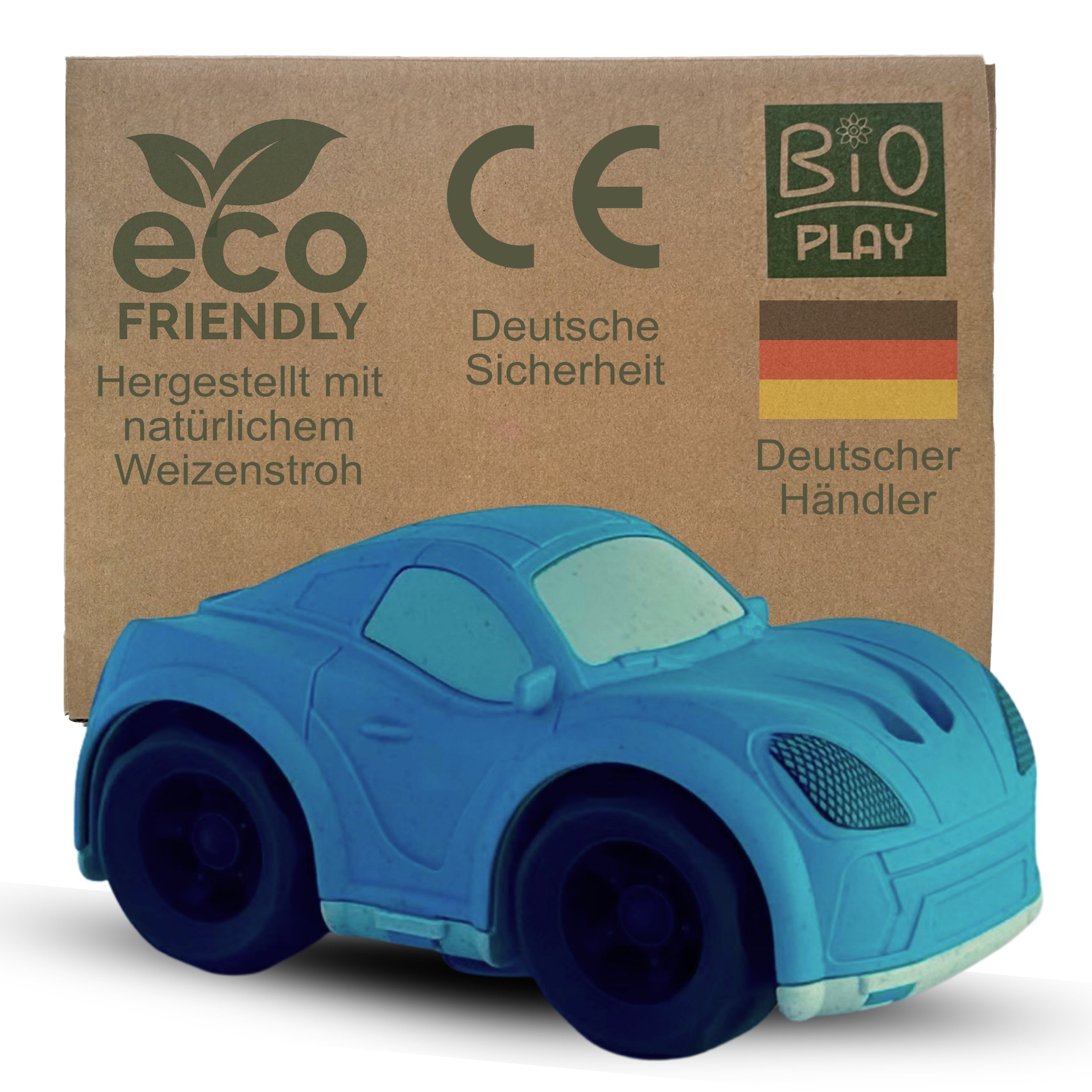 BIOPLAY® Spielzeugrennauto blau | Bio Kunststoff | Nachhaltiges Spielzeug ab 18 Monate für Jungen und Mädchen | Indoor und Outdoor