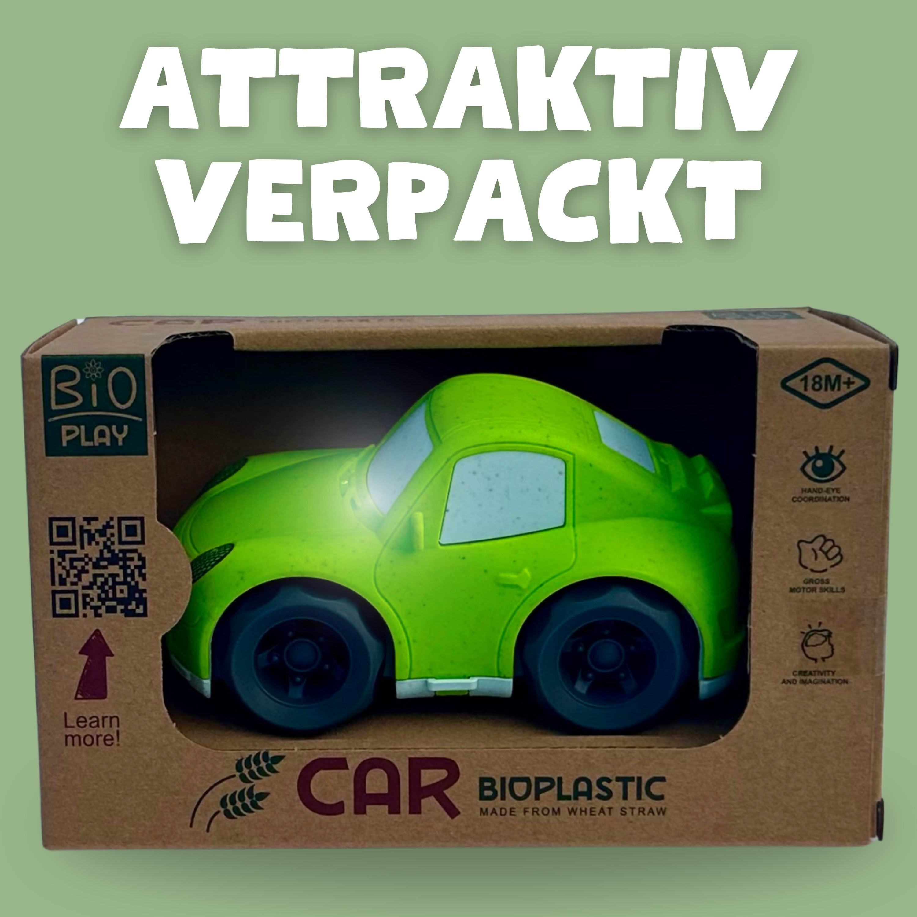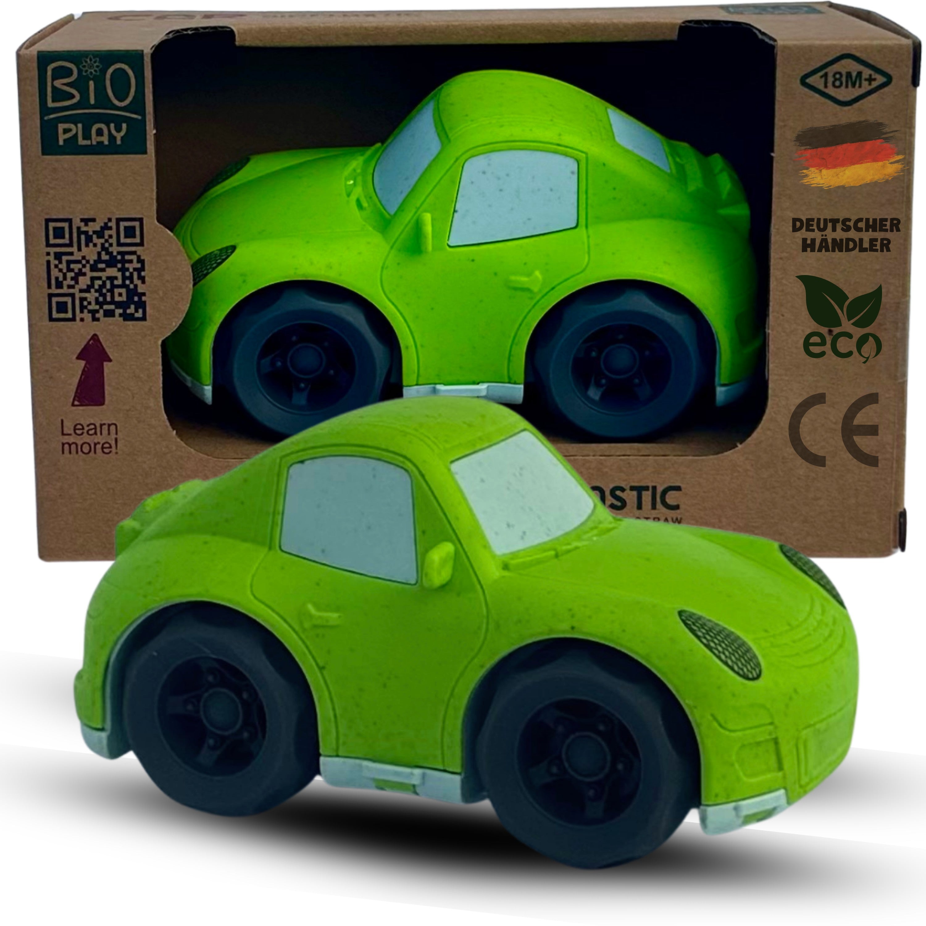 BIOPLAY® Spielzeugrennauto grün | Bio Kunststoff | Nachhaltiges Spielzeug ab 18 Monate für Jungen und Mädchen | Indoor und Outdoor