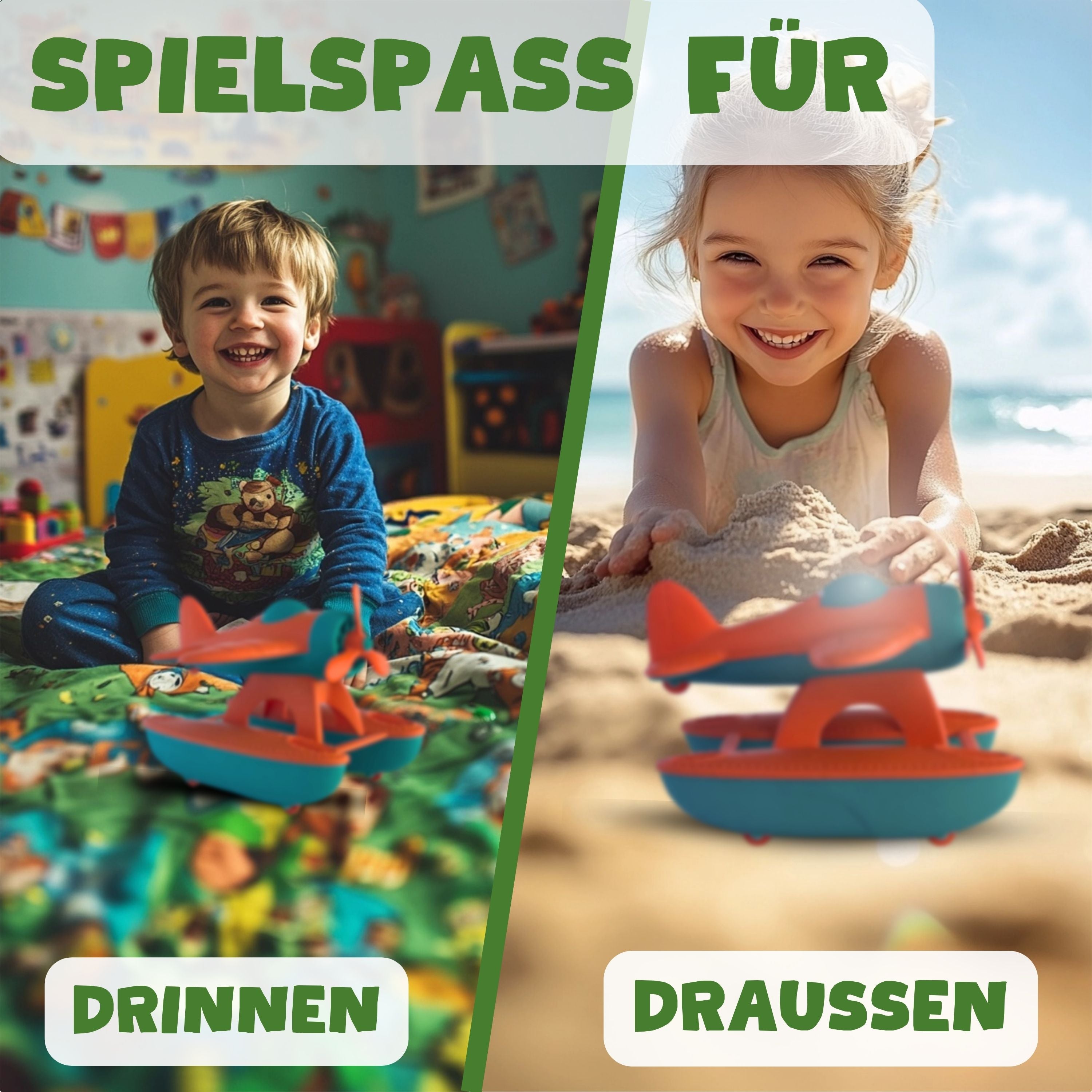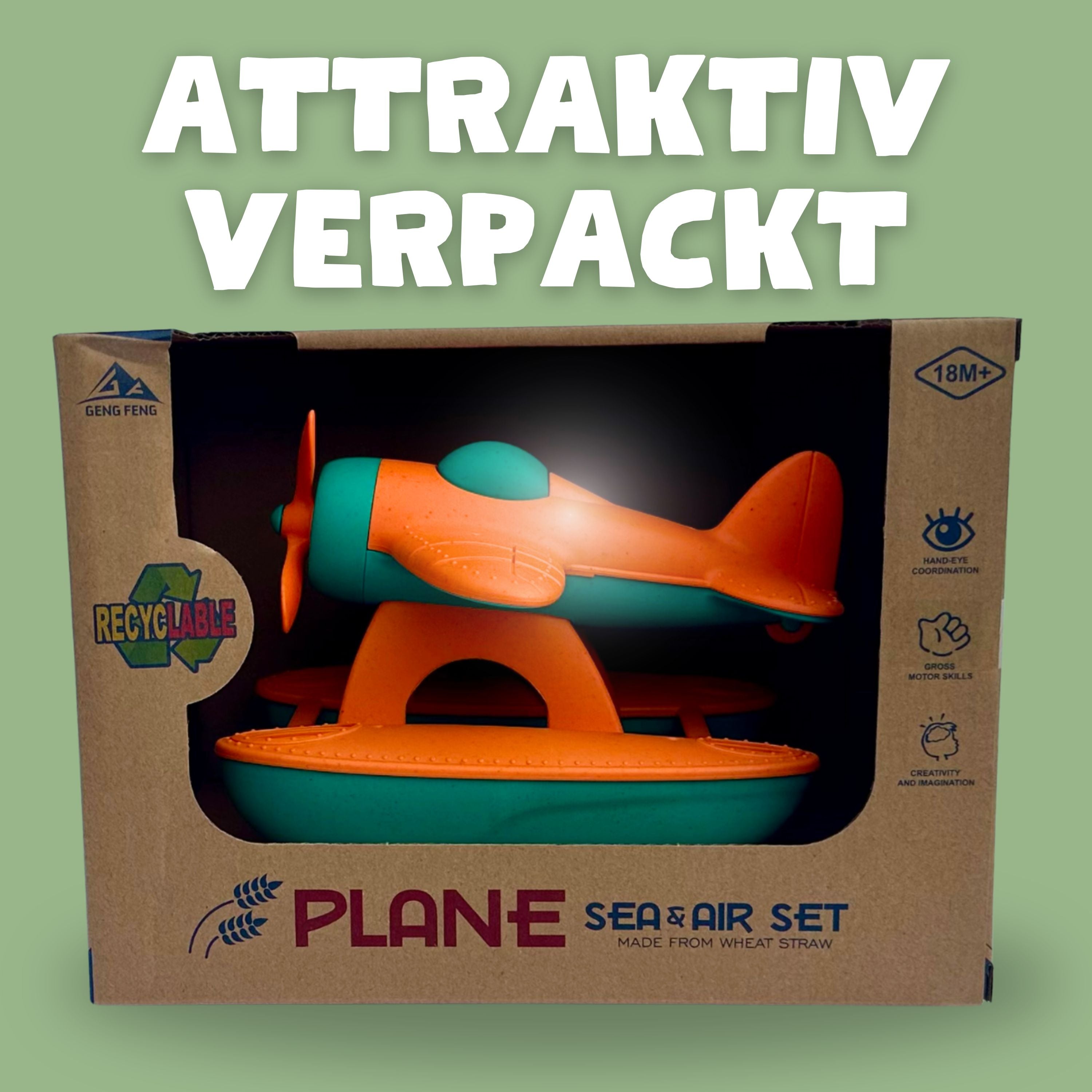 BIOPLAY® Wasserflugzeug B-Ware | Bio Kunststoff | Nachhaltiges Spielzeug ab 18 Monate für Jungen und Mädchen | Indoor und Outdoor