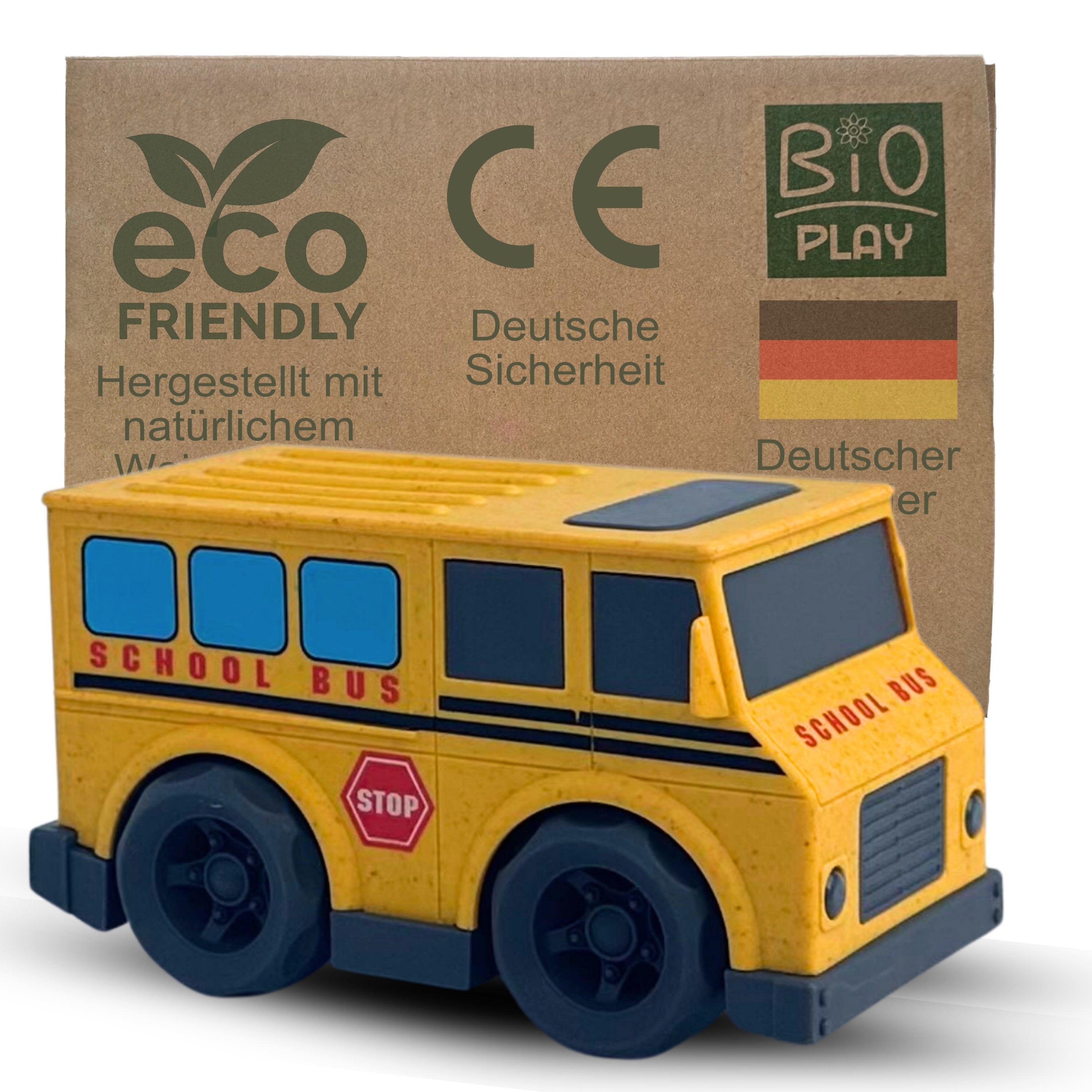 BIOPLAY® Gelber Schulbus US Style | Bio Kunststoff | Nachhaltiges Spielzeug ab 1 Jahr für Jungen und Mädchen | Indoor und Outdoor
