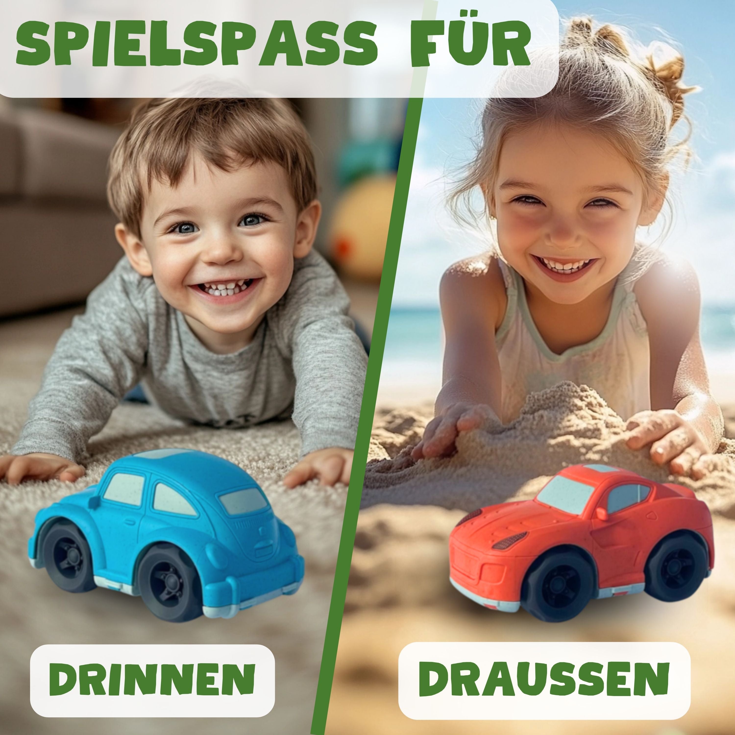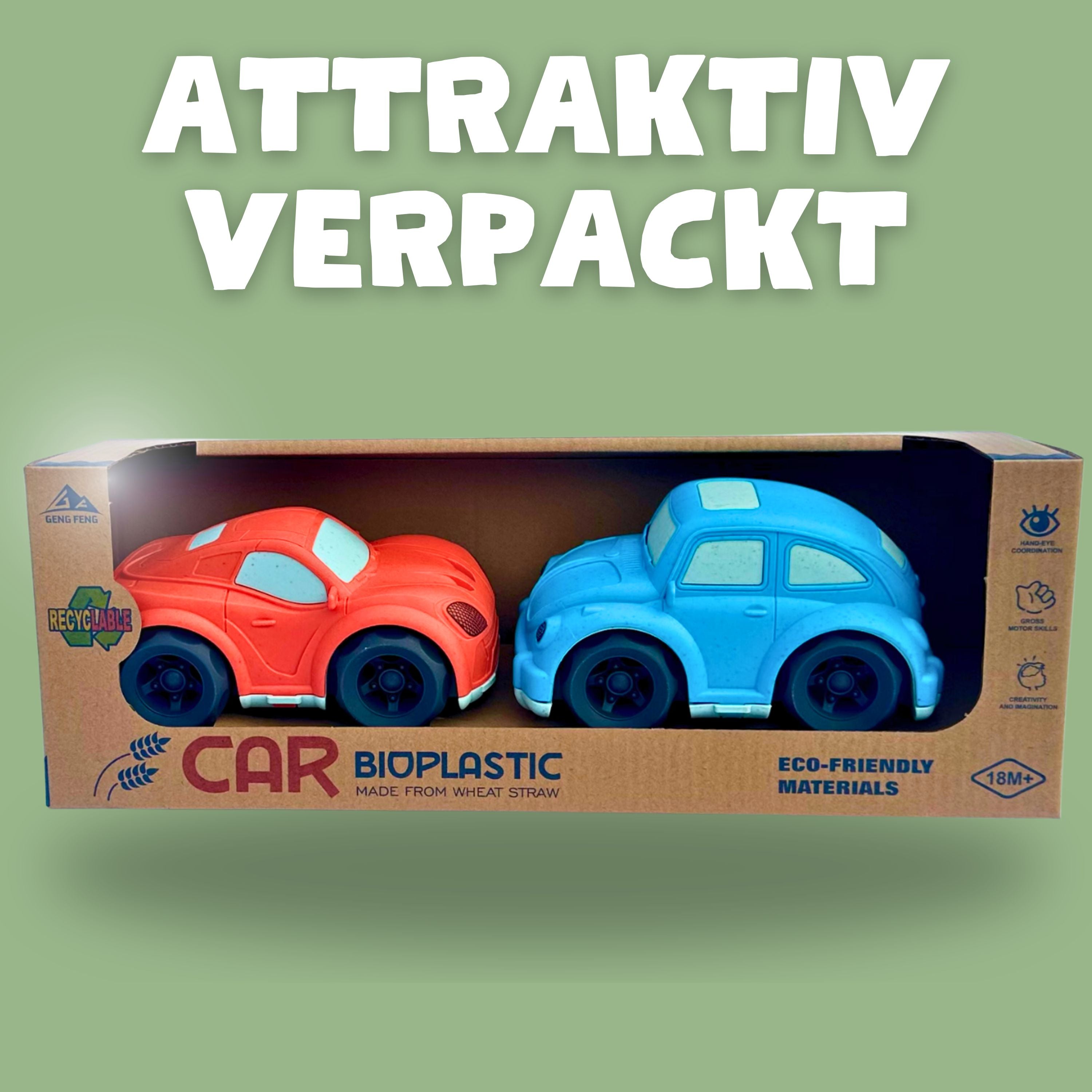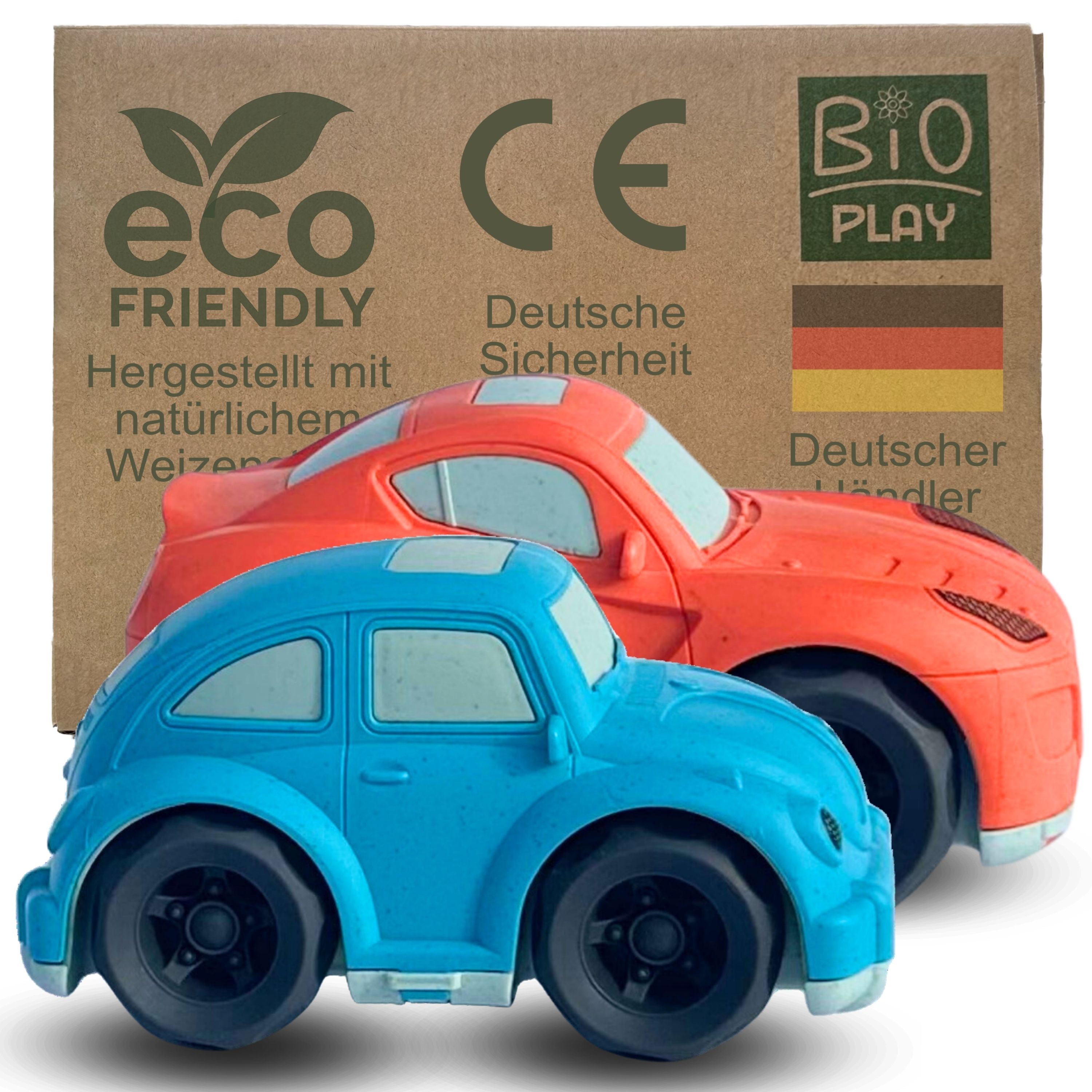 BIOPLAY® Spielauto Rennwagen & Kultwagen 2-er Set | Bio Kunststoff | Nachhaltiges Spielzeug ab 1 Jahr für Jungen und Mädchen | Indoor und Outdoor
