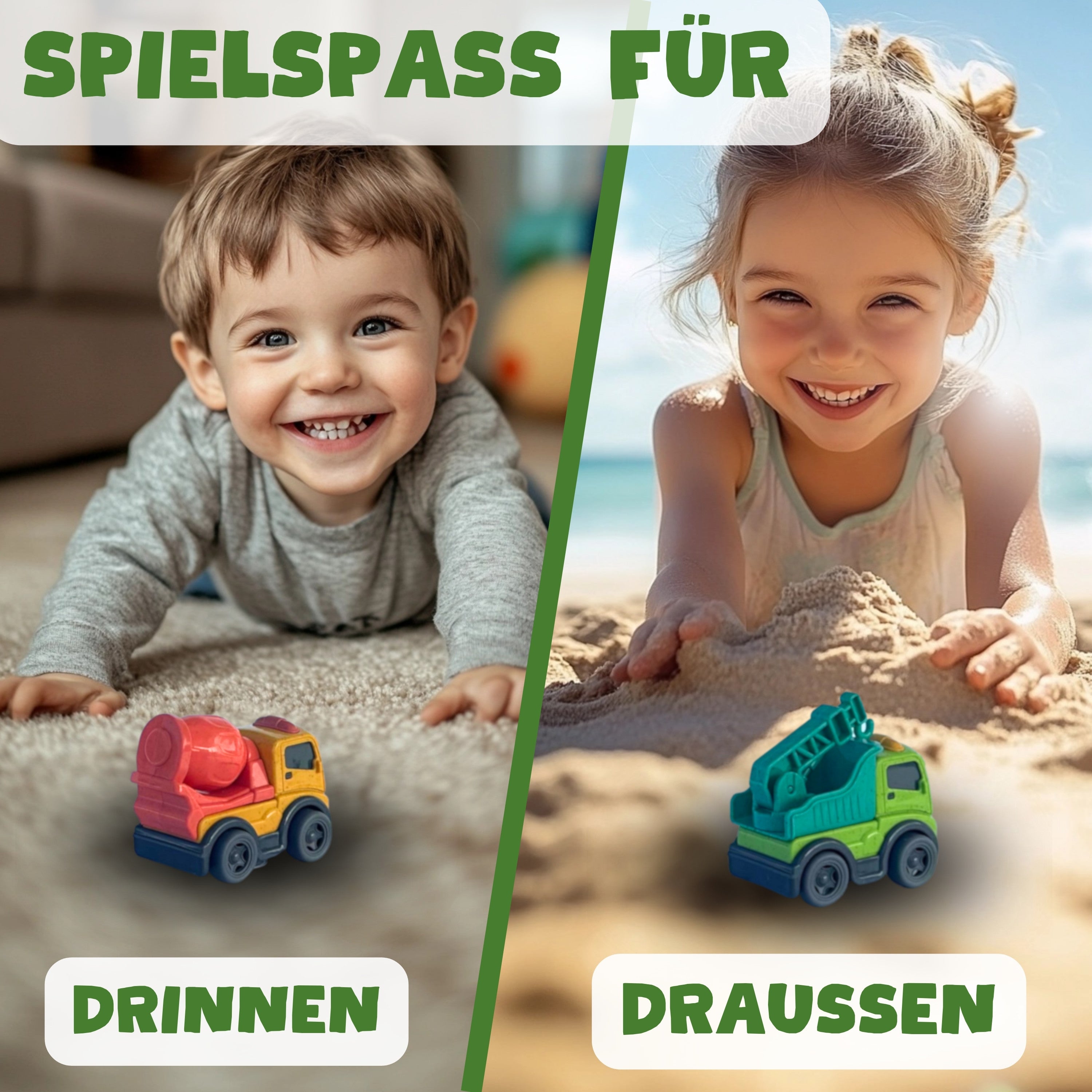 Beobachten Sie, wie die Kreativität Ihrer Kinder mit unseren langlebigen Mini Trucks aufblüht. Perfekt für abenteuerliche Spiele im Kinderzimmer, unter freiem Himmel oder als treue Begleiter in der Sandkiste.