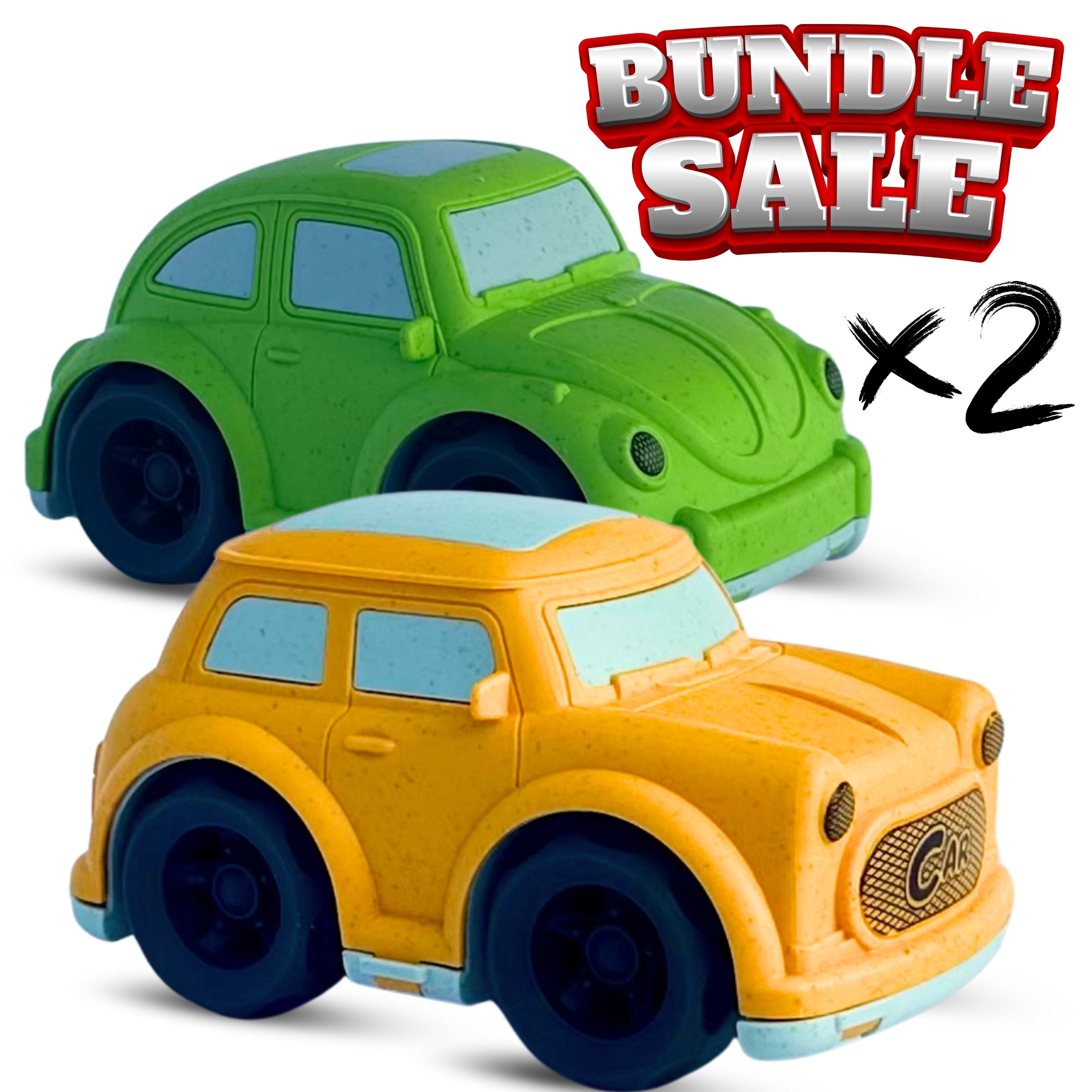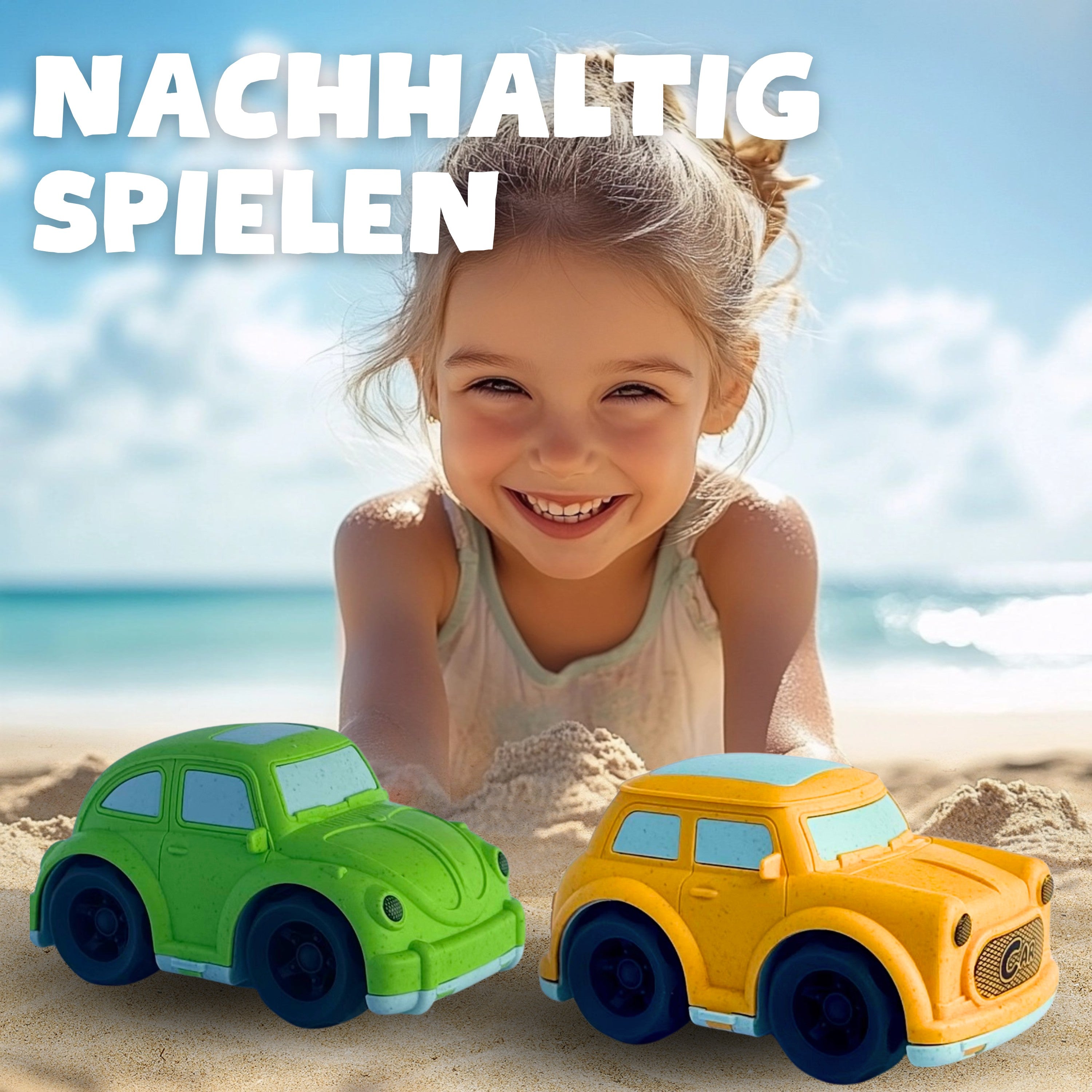 BIOPLAY® Kult Spielzeugauto Set im Käfer und Mini-Style aus Bio Kunststoff | Nachhaltiges Spielzeug ab 18 Monate für Jungen und Mädchen | Sandspielzeug ab 1 Jahr