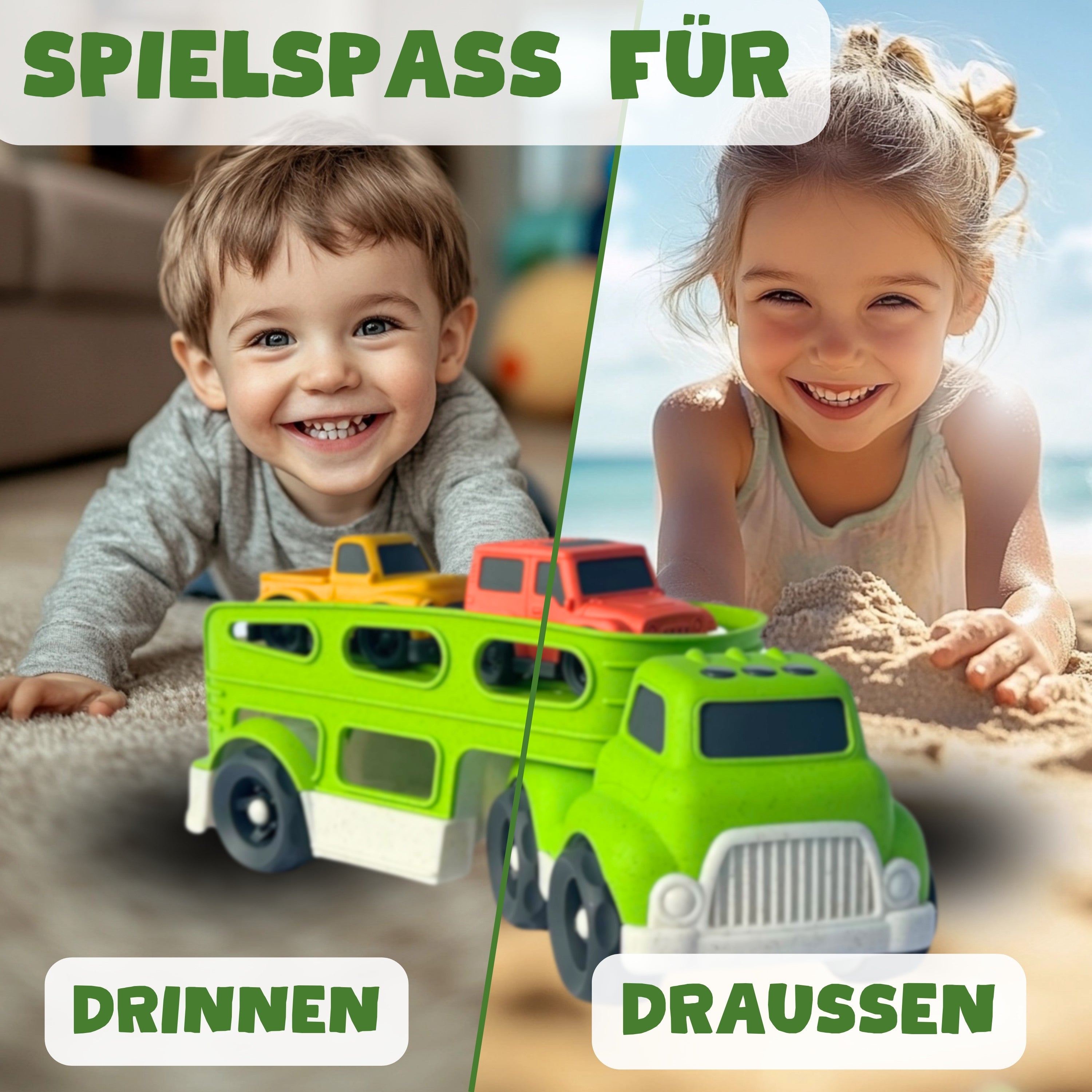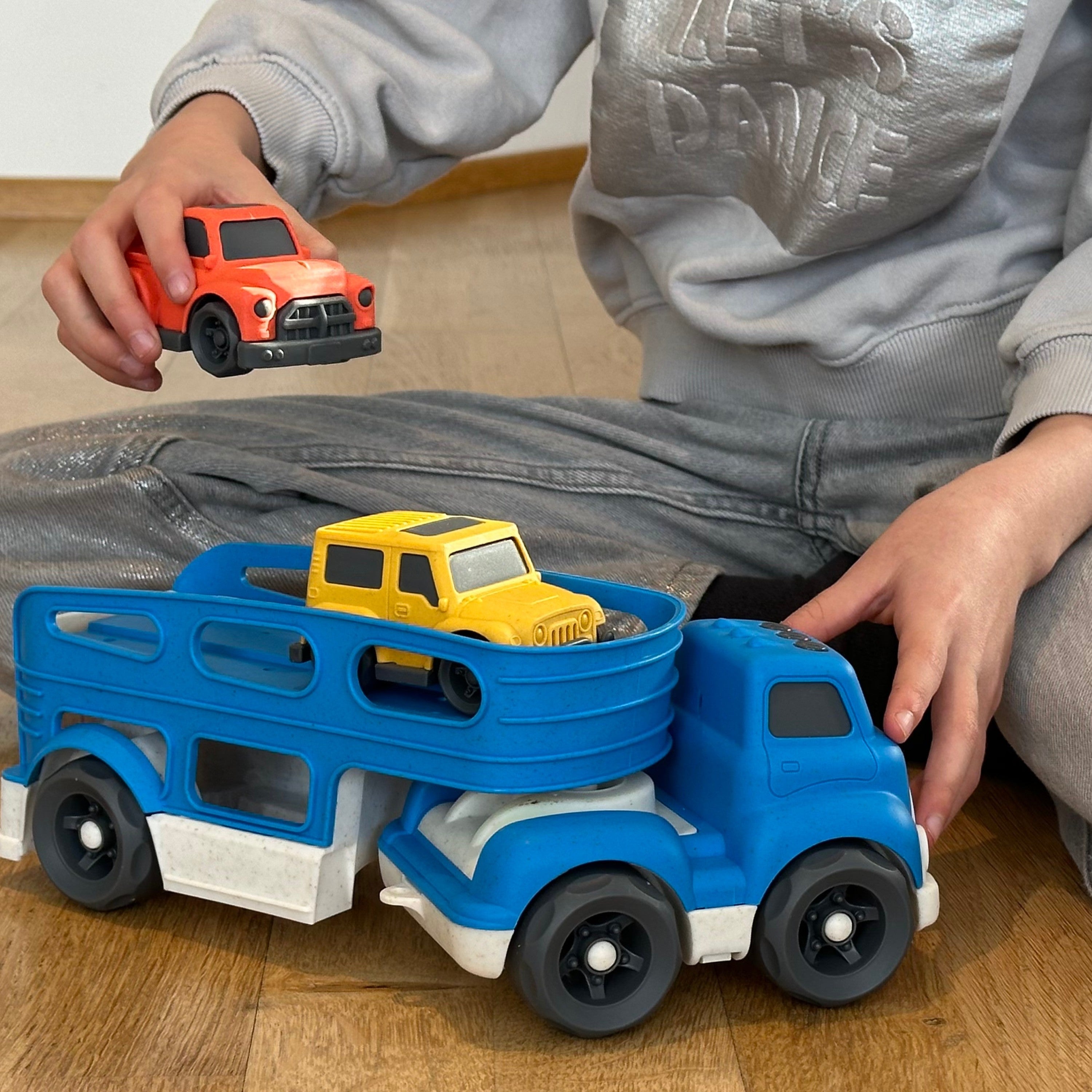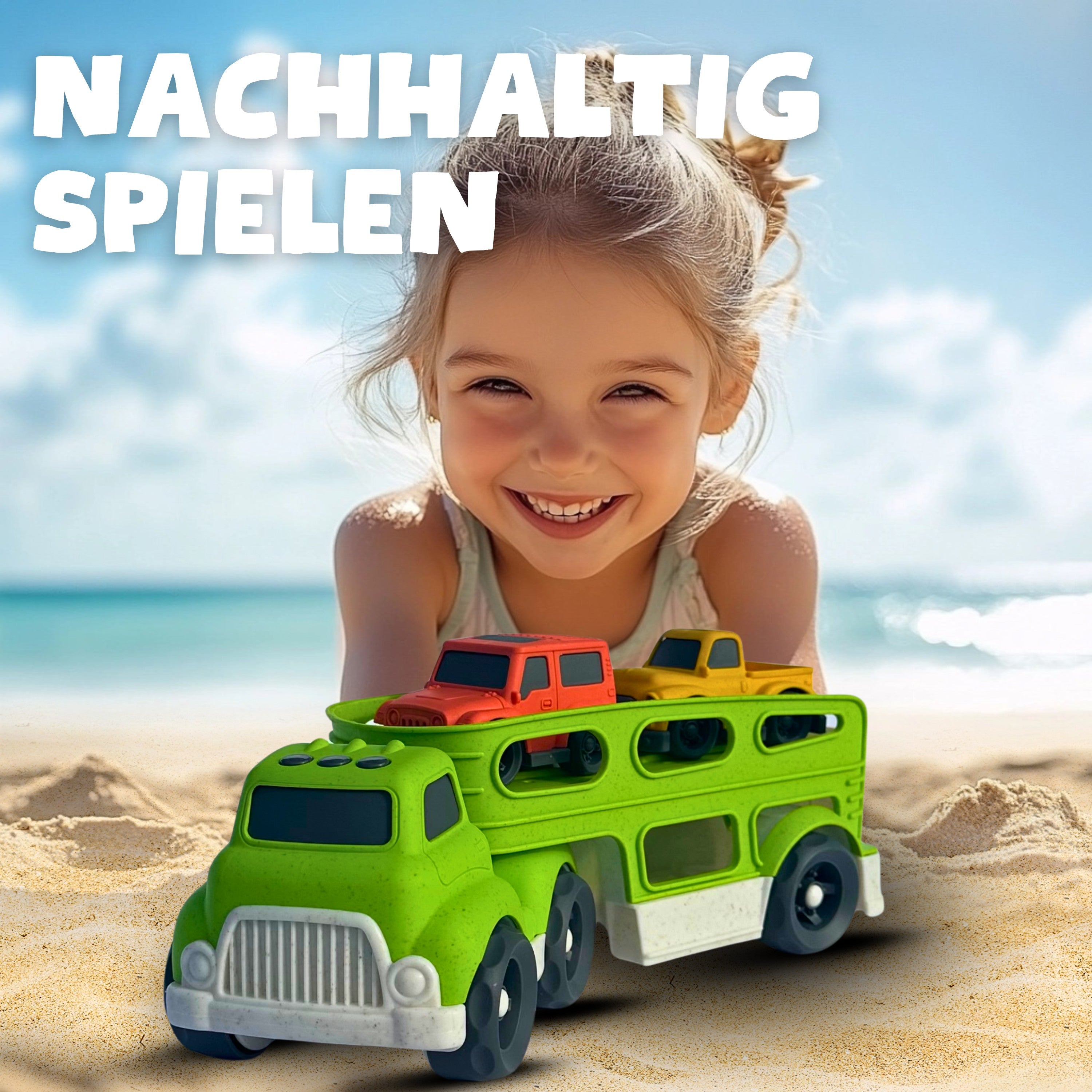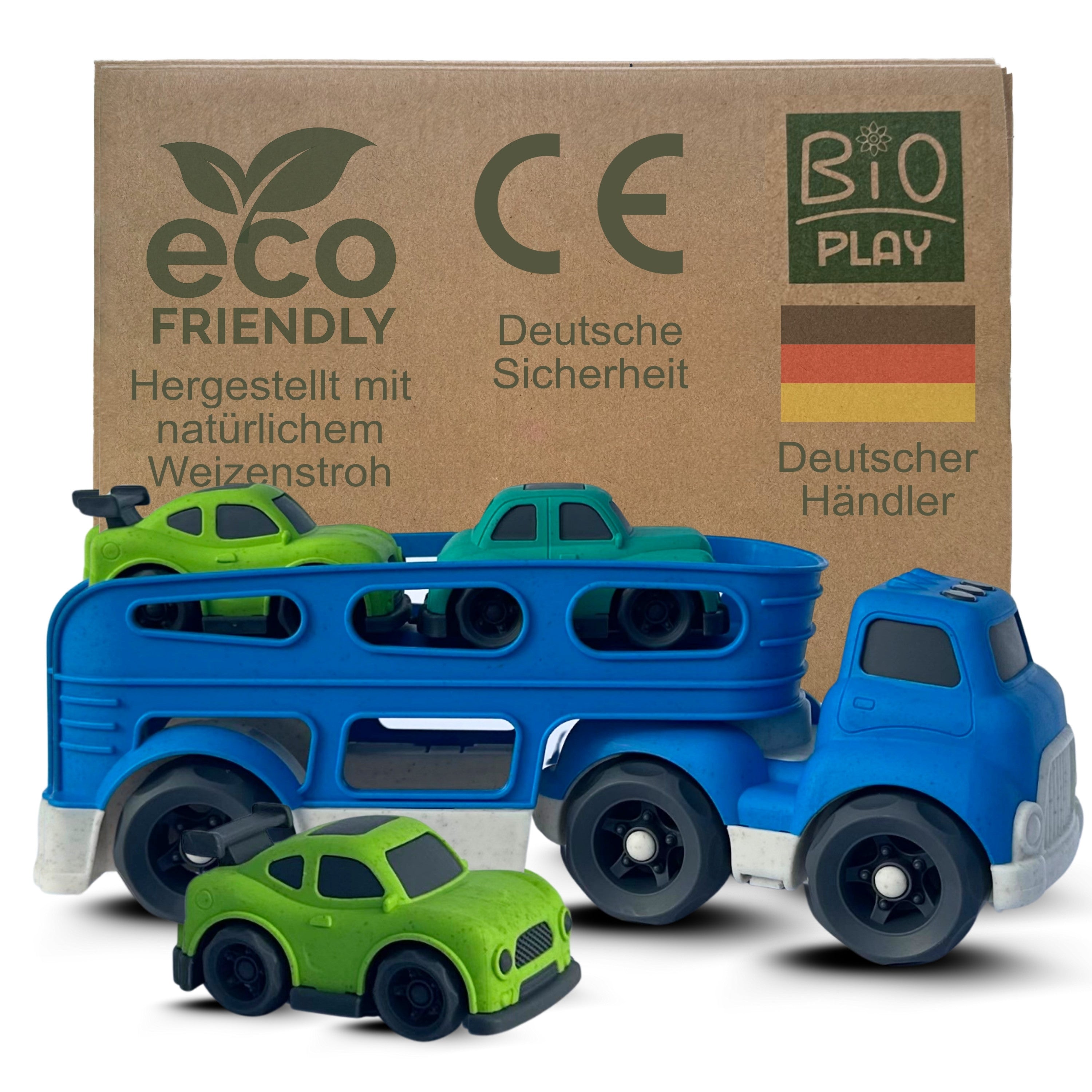 BIOPLAY® XXL-Spielzeugautos ab 1 Jahr aus Bio Kunststoff | Toller XL-Autotransporter | Sandspielzeug ab 1 Jahr für Jungen und Mädchen