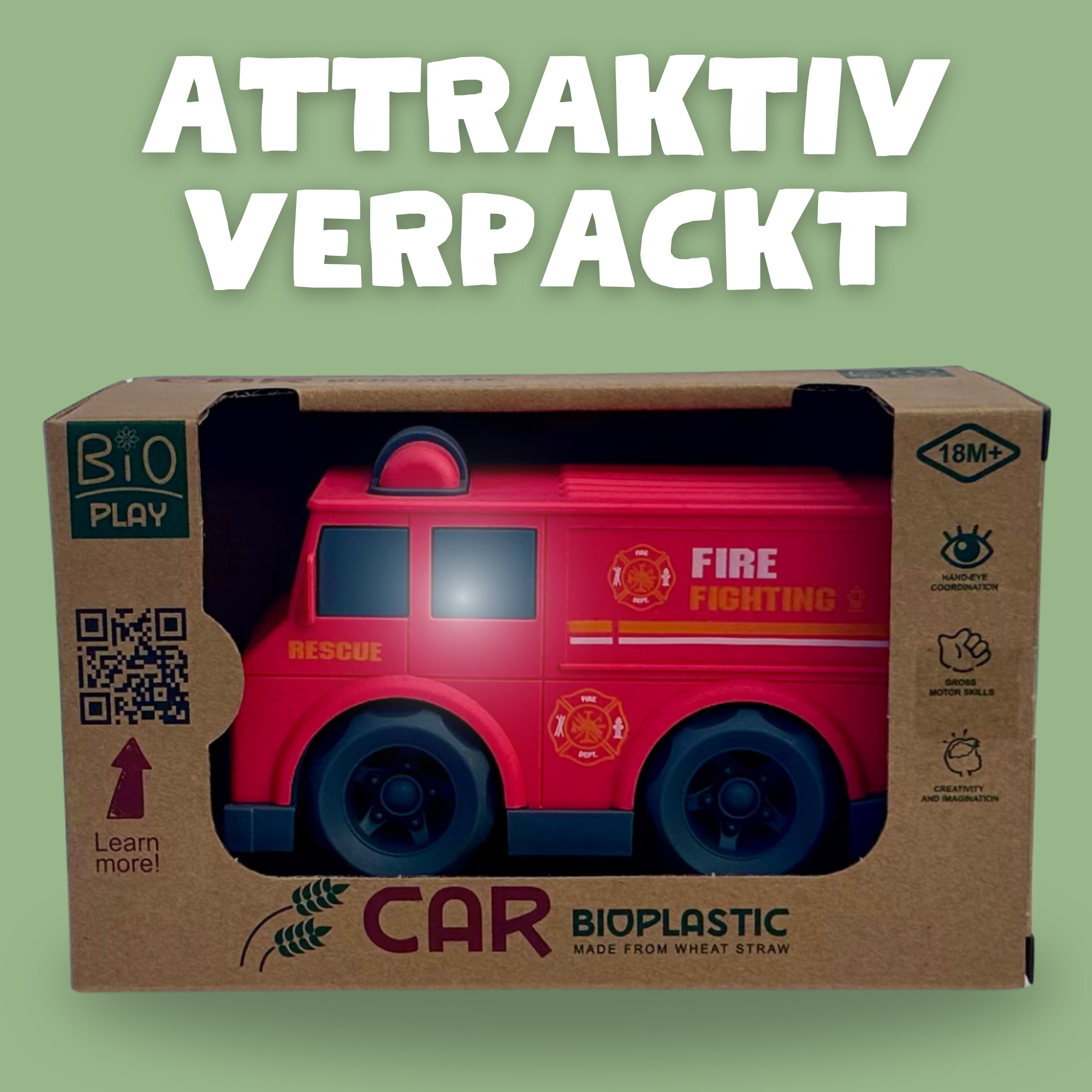 BIOPLAY® Feuerwehrauto rot | Bio Kunststoff | Nachhaltiges Spielzeug ab 1 Jahr für Jungen und Mädchen | Indoor und Outdoor