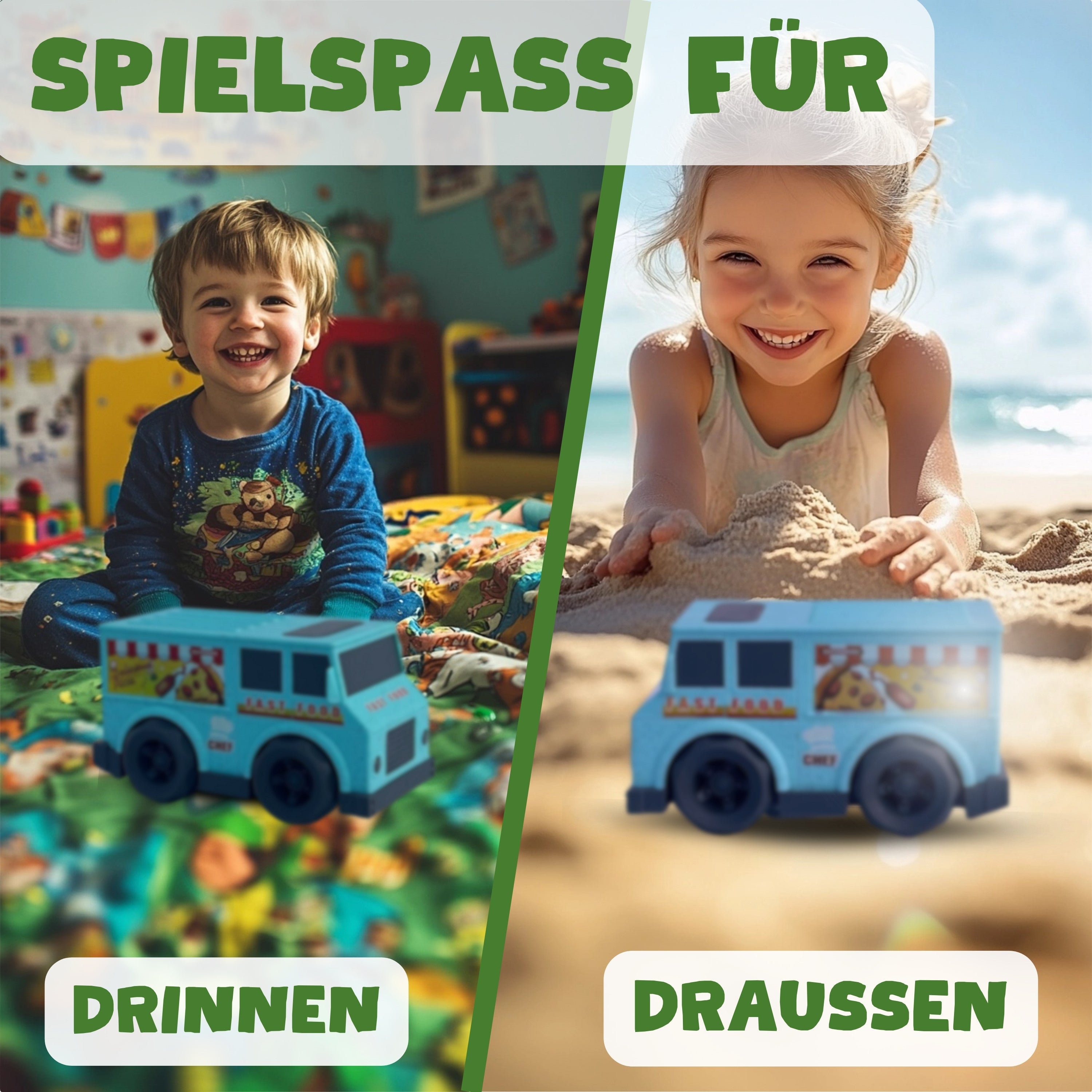 Beobachten Sie, wie die Kreativität Ihrer Kinder mit unseren langlebigen Mini Trucks aufblüht. Perfekt für abenteuerliche Spiele im Kinderzimmer, unter freiem Himmel oder als treue Begleiter in der Sandkiste.