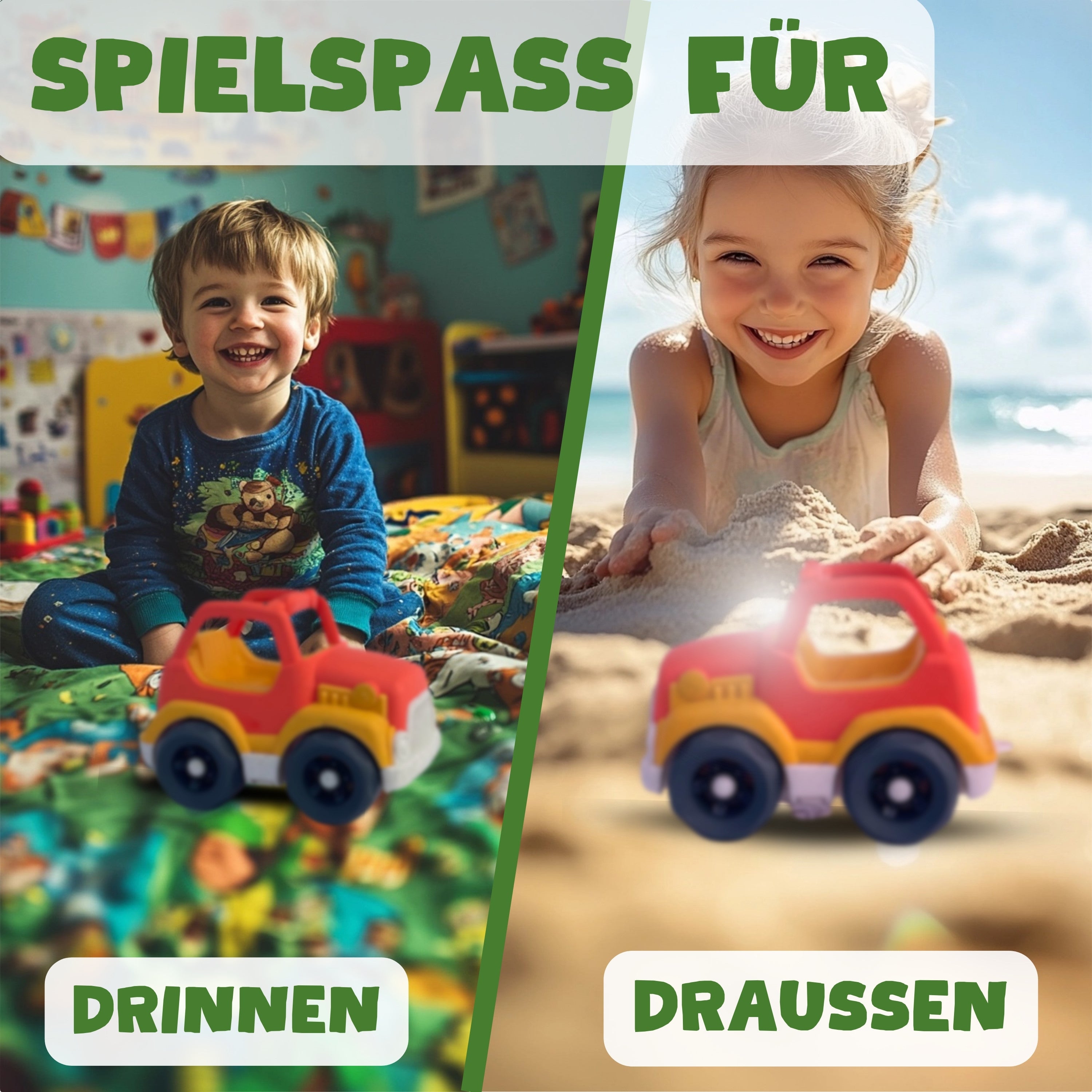Beobachten Sie, wie die Kreativität Ihrer Kinder mit unseren langlebigen Mini Trucks aufblüht. Perfekt für abenteuerliche Spiele im Kinderzimmer, unter freiem Himmel oder als treue Begleiter in der Sandkiste.