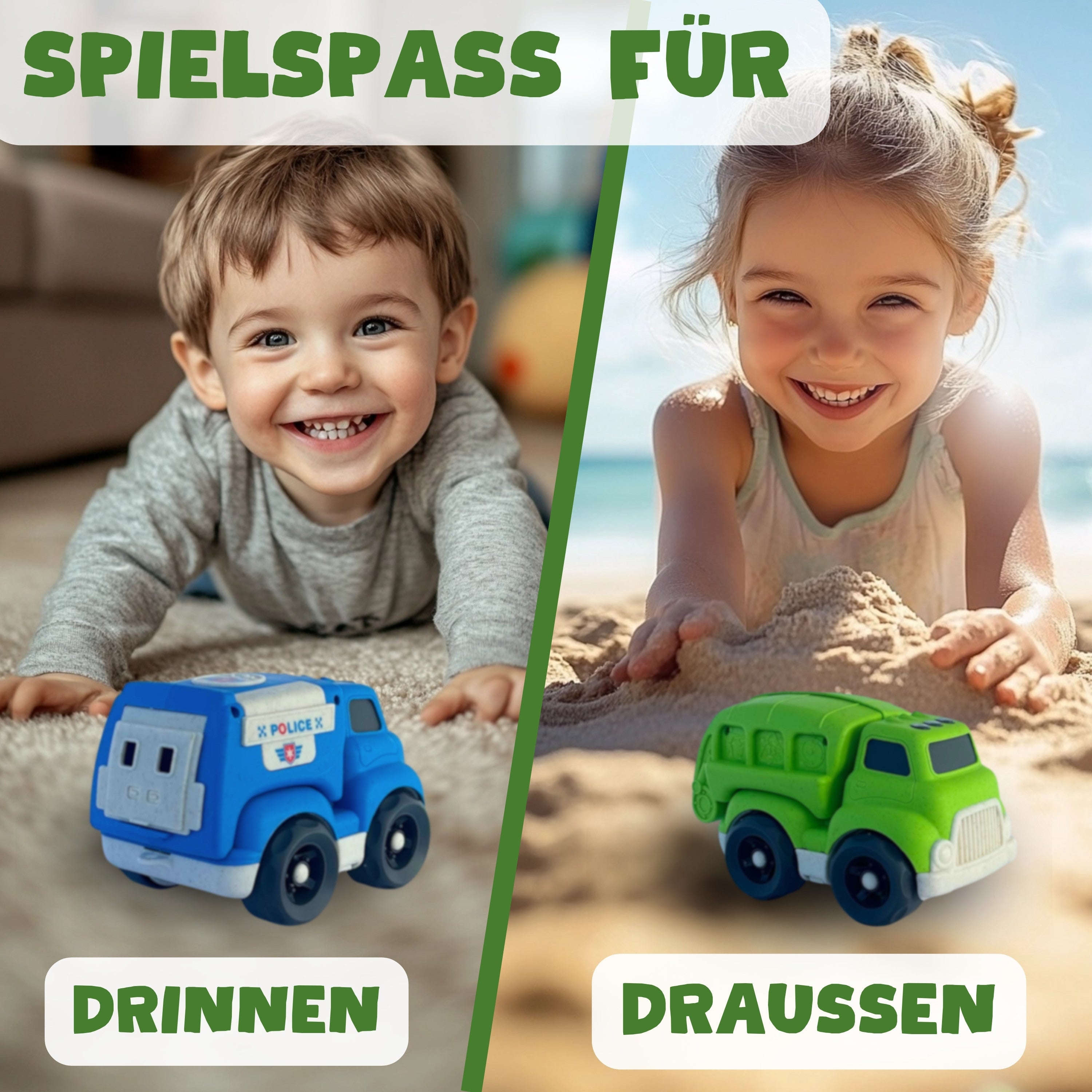 Beobachten Sie, wie die Kreativität Ihrer Kinder mit unseren langlebigen Mini Trucks aufblüht. Perfekt für abenteuerliche Spiele im Kinderzimmer, unter freiem Himmel oder als treue Begleiter in der Sandkiste.